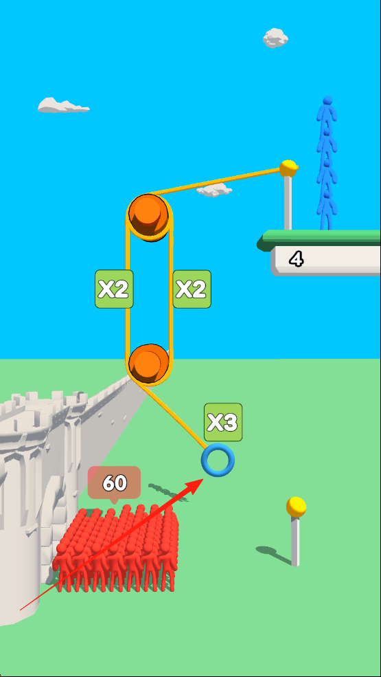 1、真实物理飞索系统:采用先进物理引擎,真实模拟飞索弹射与摆动效果,玩家需根据距离和高度精准调整发射角度,增加操作乐趣与策略深度。