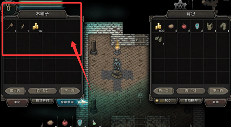 2、开启之后会有一些材料,可以选择转移到自己的背包里。
