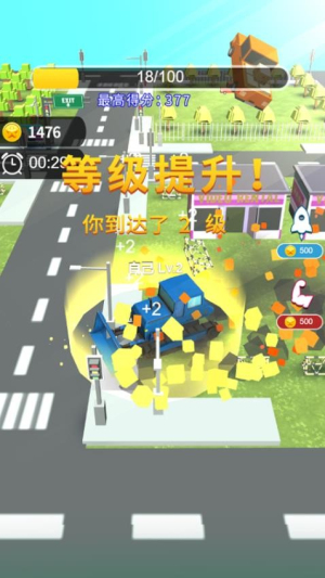 1、等级进阶优势,挑战中车辆等级提升显著。高阶车辆突破物理限制,可推倒重型建筑,解锁特殊拆迁模式,挑战后期凭借经验值优势无往不利,轻松应对密集障碍物,游戏进程掌控感更强。
