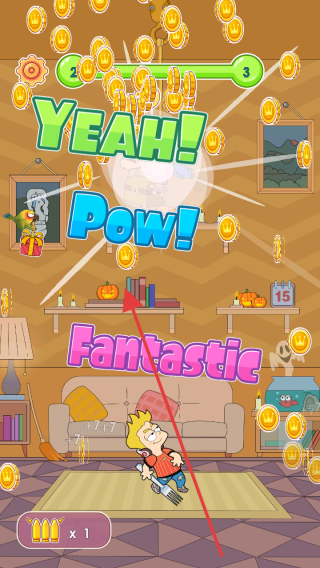 3、持续在关卡内攻击目标,收集大量金币,看到激励性提示(如【YEAH!】【Pow!】【Fantastic】),完成关卡任务,解锁后续内容。