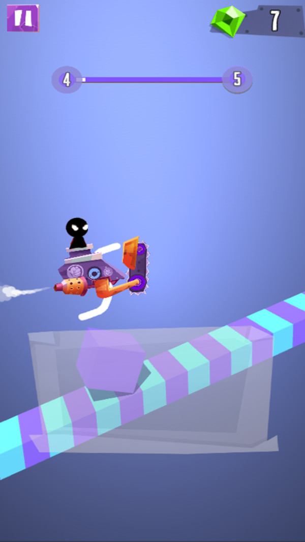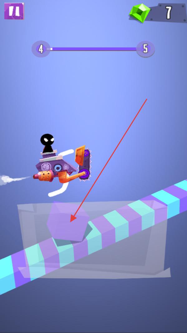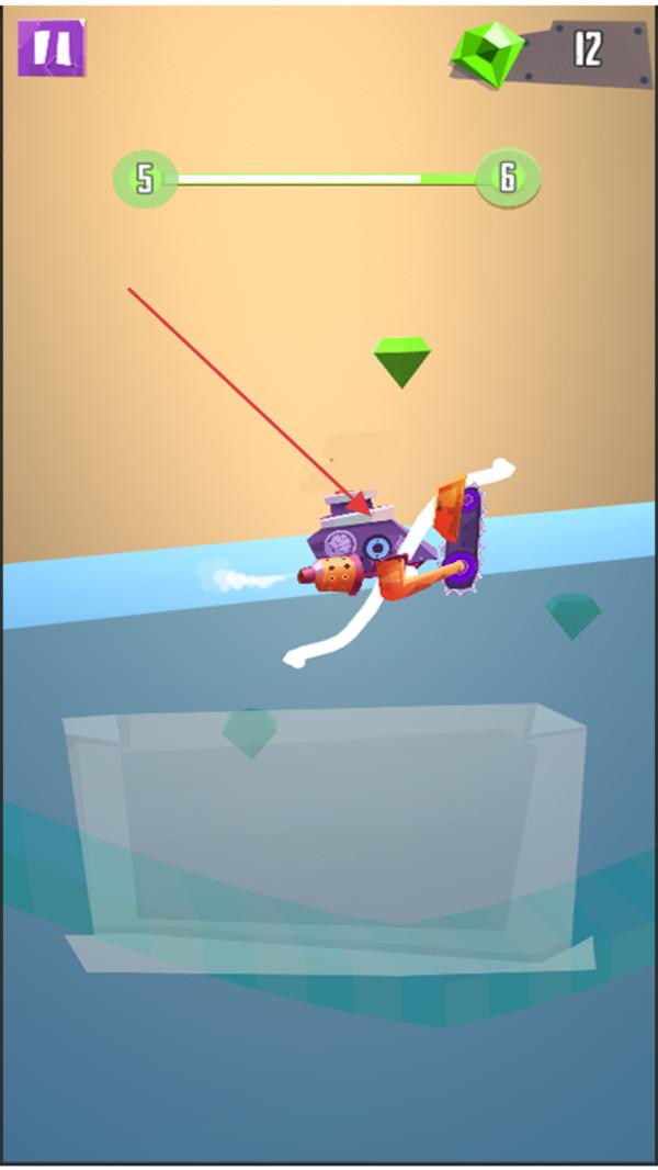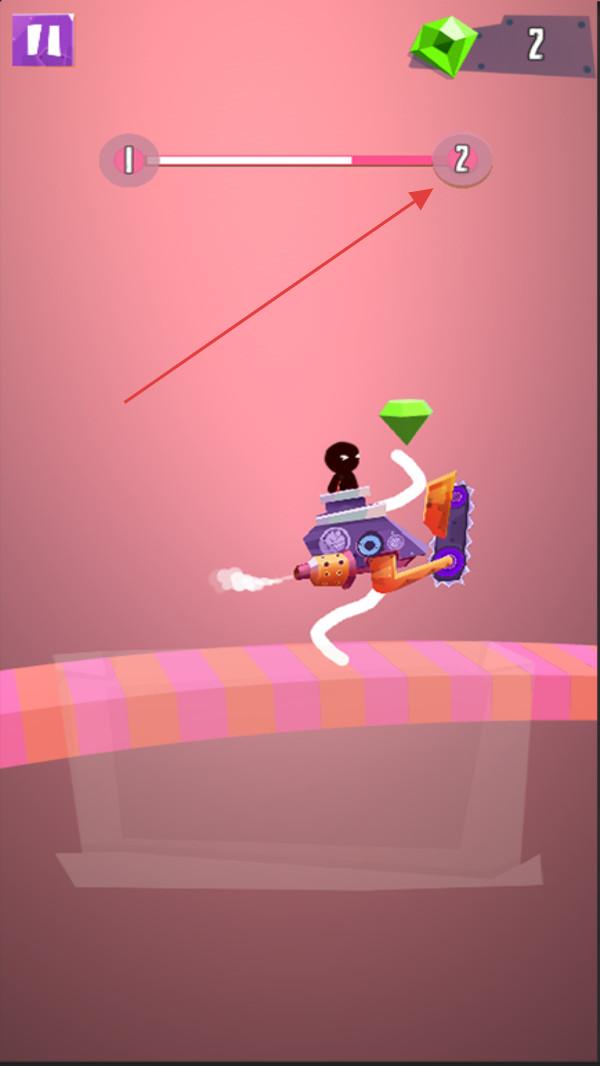 1、进入游戏关卡,操控火柴人驾驶载具前进,留意屏幕上方的进度条,如从【5】向【6】推进,同时,关注绿色钻石位置,尽量收集以获取高分。