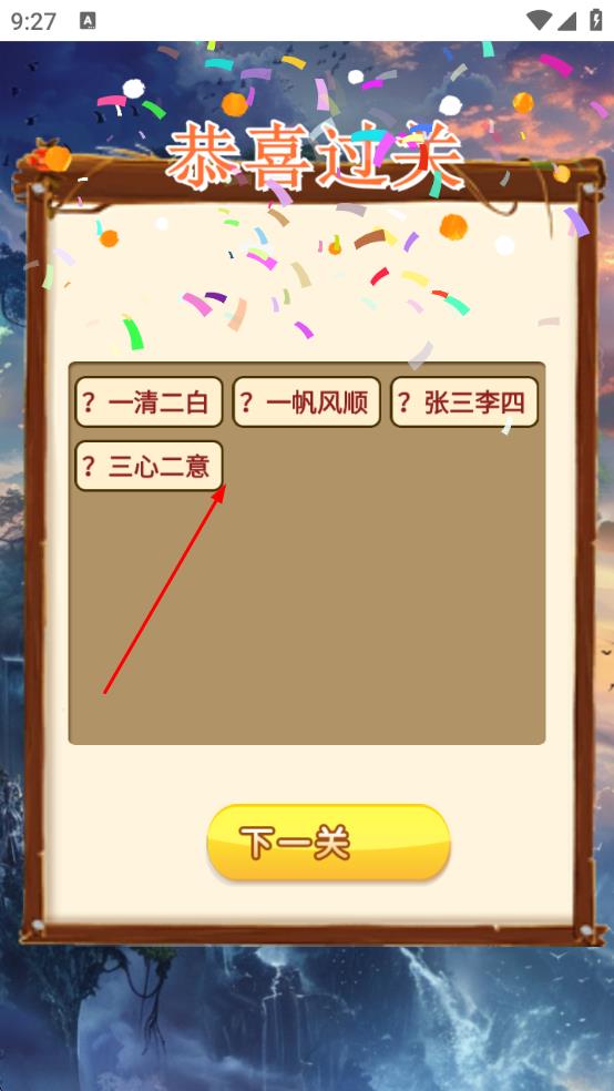 3、当成功闯过层层关卡,填对所有成语,便能顺利通关,解锁新的游戏内容,收获满满的成就感。