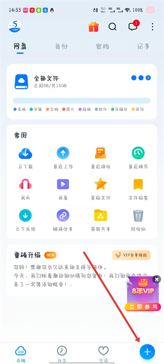 1.存储:网盘首页UI全新优化,文件分类更清晰,找文件更快更顺手。