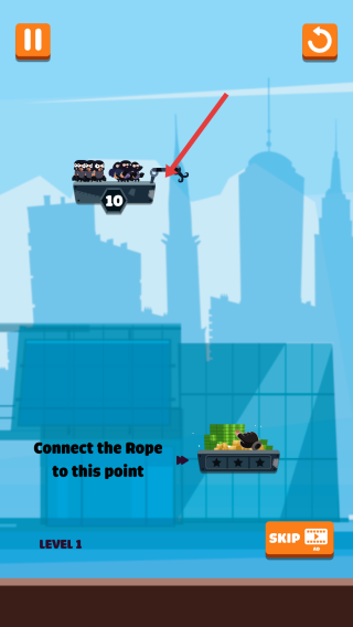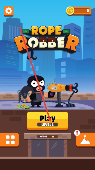 1、进入游戏界面,点击黄色的【PlayLEVEL1】按钮,开始Rope Robber游戏的第一关。