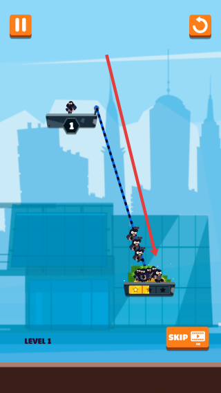 1、滑动绳索精准操控:通过滑动屏幕拉动绳索,调整强盗移动方向与速度,利用绳索的牵引避开陷阱,操作简洁却需精准把控时机,实现毫秒级的救援操作。