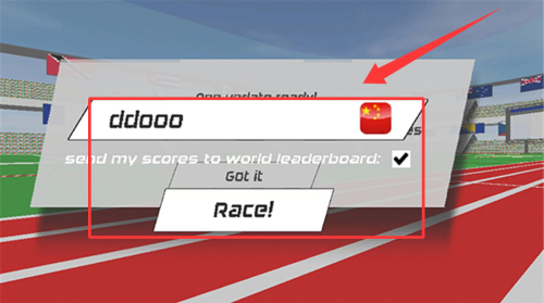 1、打开速度之星中文最新版,我们可以选择自己的国旗和输入自己喜欢的昵称。