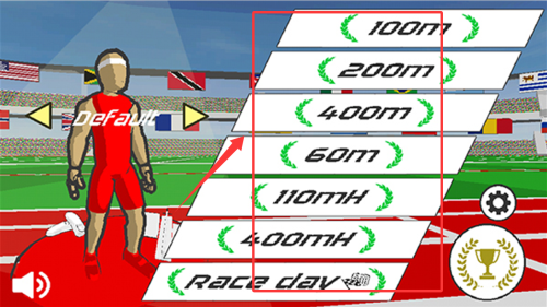 3、可看到包括100米,200米,400米和110米跨栏,400米跨栏等玩法,玩家可自行选择体验,这里以100米为例。