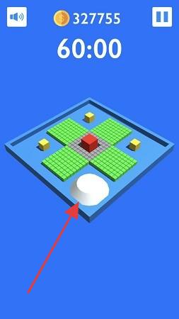 1、进入游戏关卡,操控白色小球移动,撞击绿色和黄色砖块,使其破碎,这是获取金币和推进游戏的基础操作。