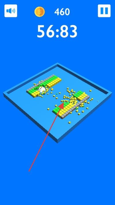 1、解压式破坏体验:砖块粉碎时的清脆音效与碎屑飞溅特效,搭配轻松明快的背景音乐,构建极具冲击力的视听解压场景,让玩家在粉碎障碍中释放压力。