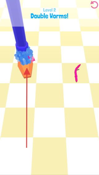 2、在【Level 2】关卡【Double Worms!】中,依照箭头方向操作工具,处理关卡中的两条虫子,注意操作的准确性和及时性。