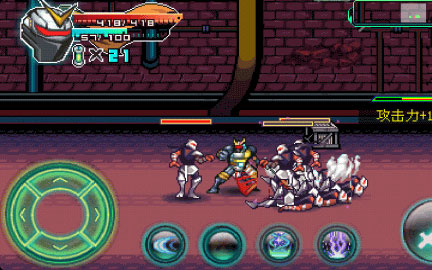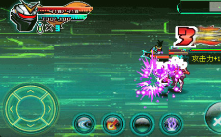 2、通过左下角的方向键躲避,同时使用技能,留意屏幕上的攻击力提升提示,增强战斗能力。