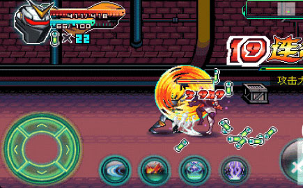 1、注意观察角色的生命值和能量值,利用技能按钮释放技能,进行连续攻击,拾取掉落的道具。