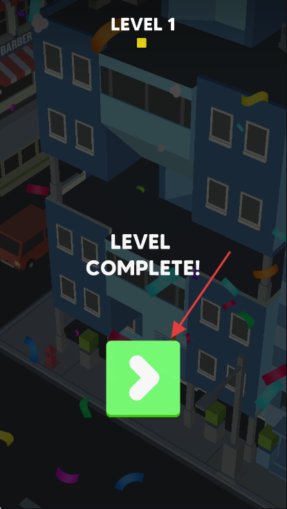 2、关卡完成显示【LEVEL COMPLETE!】,点击绿色箭头按钮进入后续关卡。