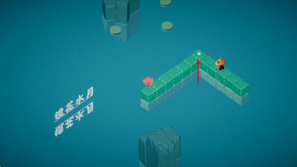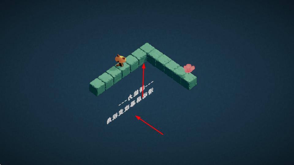 1、玩家操控小动物角色在由绿色方块搭建的平台上移动,控制其前进方向。