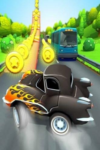 2、赛车操控创新:突破传统跑酷操作,“漂移转向”“跳跃升空”等赛车专属动作,长按屏幕触发漂移过弯,滑动屏幕实现空中翻转,兼具跑酷敏捷性与赛车操控感。