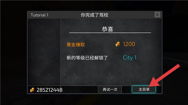 2、完成教程关卡后,在结算界面点击【主目录】按钮,返回游戏主界面。