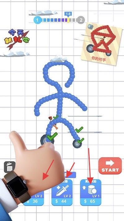 1、战车设计:使用手指在屏幕上绘制战车的轮廓,然后填充气球作为动力源,气球的数量和位置将影响战车的移动速度和方向。
