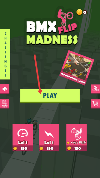 1、在BMXFlipMadness游戏启动界面,点击【PLAY】按钮,进入游戏。