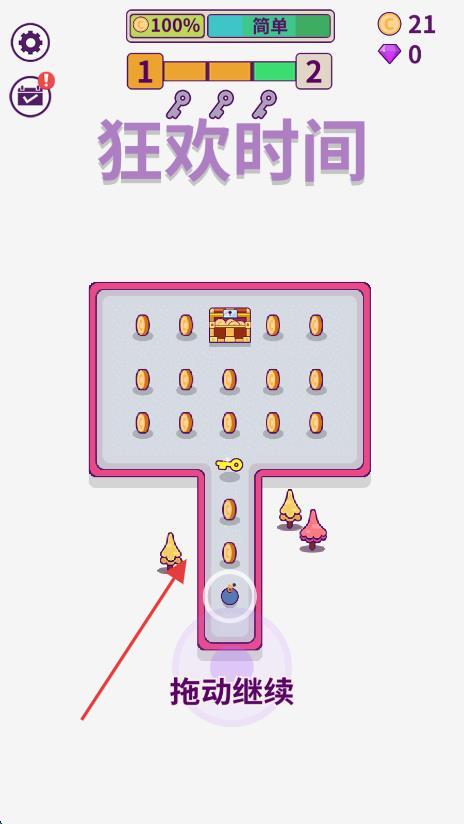 3、在15秒内清除所有坏兔子并撞击宝箱,即可通关;若倒计时结束前未完成目标,则游戏失败,可消耗道具重试或重新规划路线。