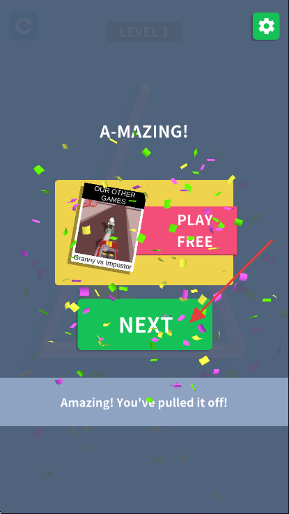 2、关卡通过后,点击【NEXT】按钮,进入下一关游戏。