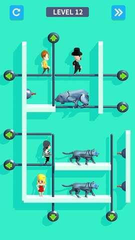 1、动态场景难度升级:格子场景与其中的人、动物会随关卡推进动态变化,障碍布局不断更新,难度逐步提升,迫使玩家打破固有思维,在变化中寻找新的通关思路。