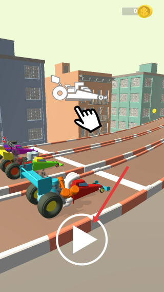 1、在游戏启动界面,点击播放按钮,开始赛车游戏。