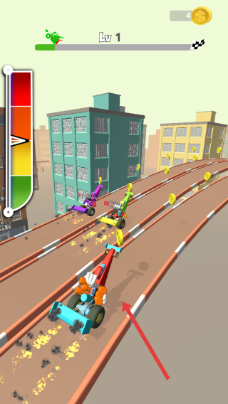 2、游戏中操控赛车按箭头方向前进,收集金币并超越对手。