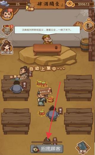 1、进入游戏点击“开店”按钮,留意“食材上新”“解锁”提示更新食材与功能,点击“招揽顾客”增加客源,这是开启经营的关键操作。