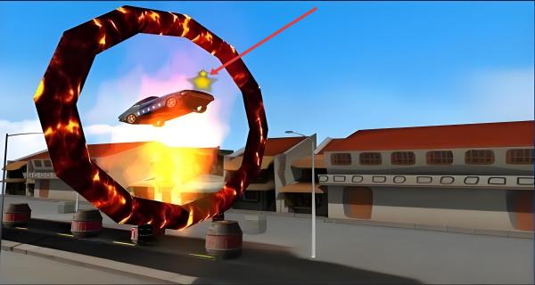 2、在驾驶自己的车辆穿过火圈时,需要注意收集空中的星星,提升自身的游戏得分与进度。