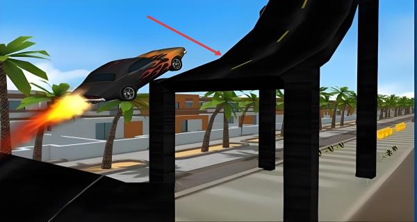 3、在车辆行驶至黑色的赛道时,需要按箭头指示操作,确保在赛道上顺利行驶并完成特技动作。
