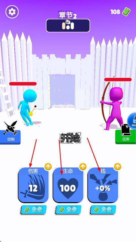 2、玩家可使用金币等资源,提升角色的伤害、生命等属性,增强角色战斗能力,更好地应对敌人。