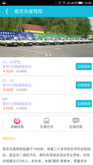 快驾app是一款驾校选择的最好帮手,你可以在这里轻松的找到附近的驾校,并且还可以享受到快驾为您争取的各类优惠,你可以在这里以便宜的价格体验到驾校的服务,并且还有各类驾校考试题目,你可以在手机上进行测试和模拟,查看自己的技术水平。