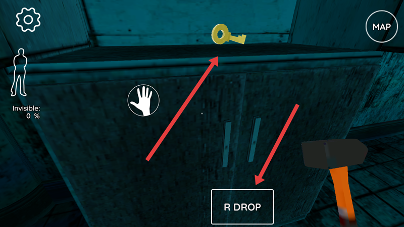 2、角落的柜子上面被木板钉住了,用锤子砸开它,得到一把金色钥匙。