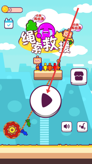 2、观察高楼结构与被困者位置,滑动屏幕操控绳索连接相邻建筑或固定点,搭建救援通道。