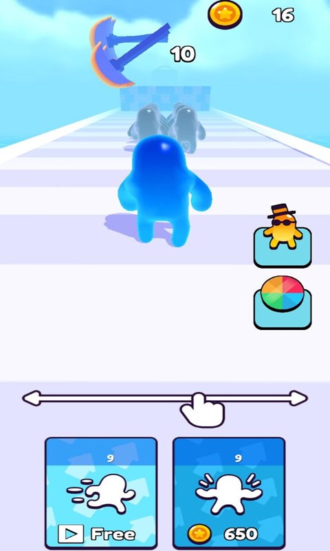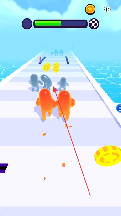 1、进入游戏,从多款粘液人角色中选择心仪形象,在起点滑动屏幕操控其左右移动,避开首个障碍,正式开启跑酷挑战。
