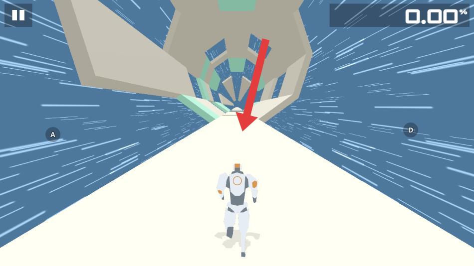 3、游戏进行时,按照箭头指示方向前进,在通道中操控角色稳步前行,注意路径确保顺利推进游戏。