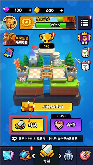 1、启动游戏后,选择“对战”模式,进入竞技场。
