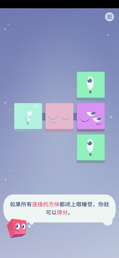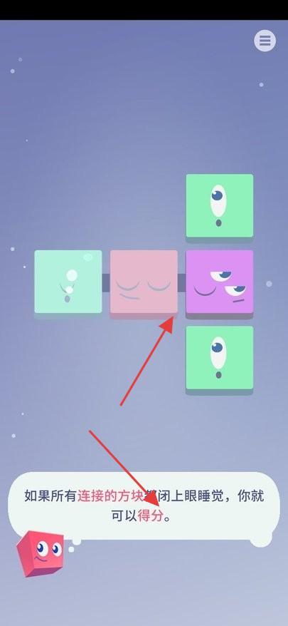 2、当所有相互连接的方块都闭上眼睛时,玩家可以得分,需巧妙放置方块以触发此机制。