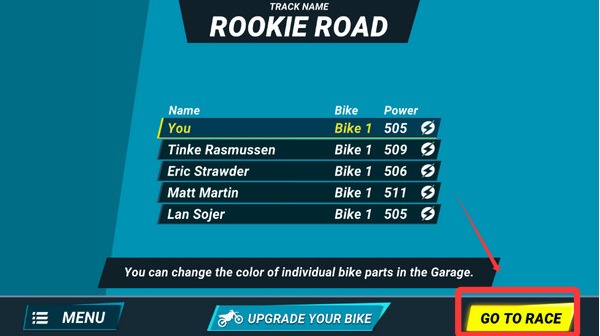 3、匹配完点GO TO RACE,直接进入赛道,开始愉快玩耍吧。