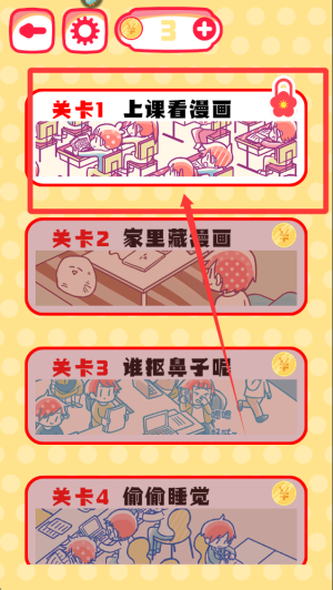 2、解谜找茬融入教学场景,考验玩家观察力。玩家需在漫画中找出开小差的学生,如化妆、看漫画等违规行为。不同场景隐藏不同线索,需仔细观察学生的表情动作与环境细节,提升专注力与反应能力。