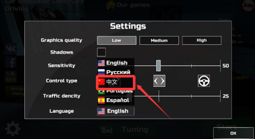 2、打开设置按钮后,点击设置中文,然后选择OK。