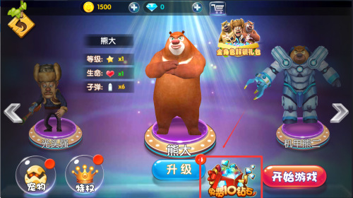 1、趣味装扮系统,打造个性角色形象。游戏中玩家可自由搭配熊大、熊二、光头强等经典角色的造型。从服装配色到发型配件,多种选择满足个性化需求。还能根据剧情解锁特殊装扮,让角色呈现不同风格,增添冒险趣味。