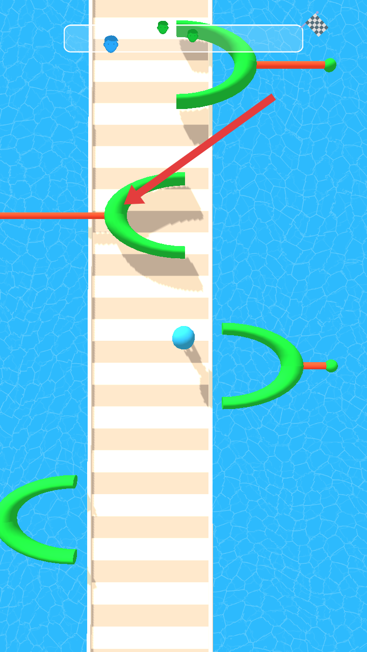 2、游戏中依照红色箭头指引,操控角色通过绿色弯道,注意避开障碍,保持前进节奏。