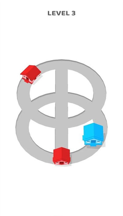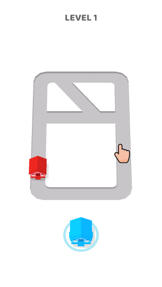 1、画面显示LEVEL1,表明为第一关,图中有灰色的路径图形,左侧有红色房屋状物体,底部有蓝色房屋状物体,是一款路径规划或操作引导的益智类。