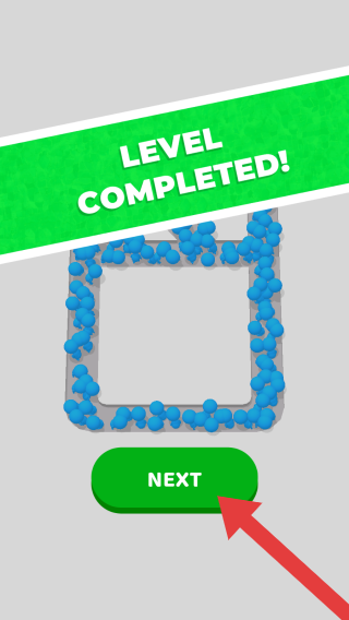 3、画面上方绿色横幅显示LEVELCOMPLETED!(关卡已完成),下方有一个【NEXT】按钮,提示玩家可点击进入下一关,整体呈现游戏通关后的过渡界面。