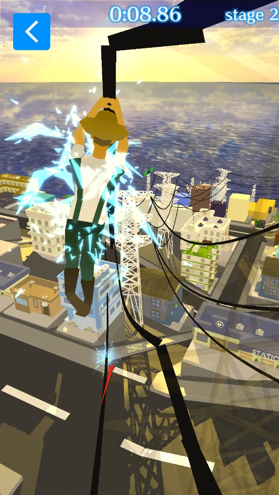 高压线绳索是一款惊险刺激又充满趣味的休闲冒险作品,为玩家带来独一无二的滑行体验,玩家化身勇敢的冒险者,置身于高耸的高压电线上,凭借一根绳索开启惊险之旅,要保持平衡,更要时刻警惕突然迸发的电流、旋转的障碍等危险,以独特的高压电线场景为舞台,搭配紧张刺激的音效,每一次躲避都是对反应力的考验,每一次成功滑行都充满成就感。