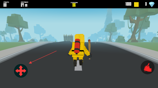 2、游戏过程中,通过左下角的十字方向键控制角色移动,收集道路上的物品,注意屏幕上方显示的距离。