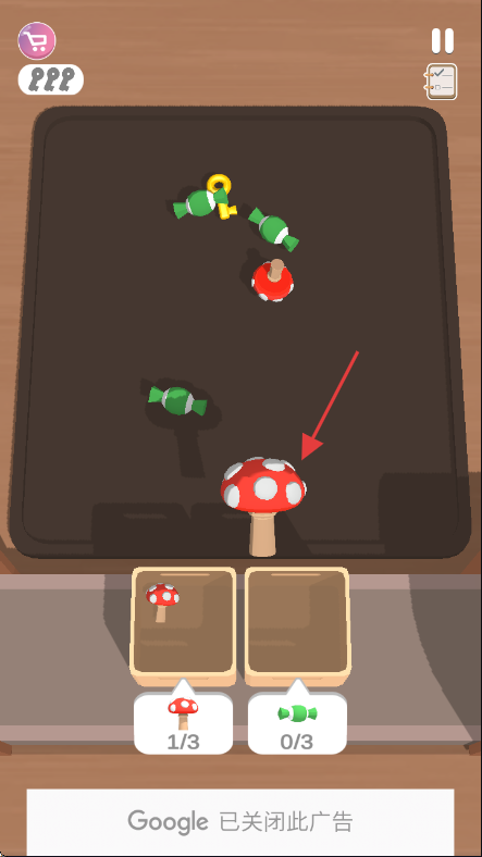 1、游戏内按提示收集【蘑菇】和【糖果】,紧盯下方收集进度条,优先完成目标物品收集以推进关卡。