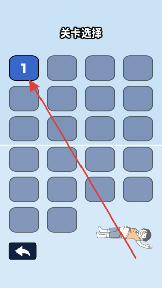 2、在关卡选择界面,依据箭头所指,点击标有数字【1】的关卡方块,开启第一关游戏。