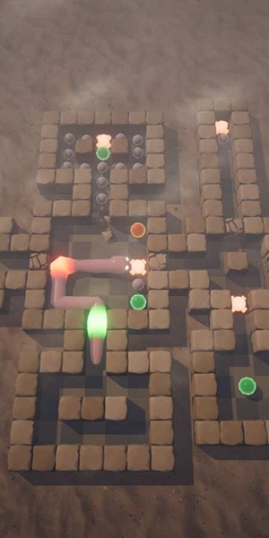 2、多元玩法融合:结合贪吃蛇吃物品变长机制与炸弹人躲避陷阱元素,地牢结构错综复杂,需灵活操控蠕虫避开炸弹,考验反应与策略能力。